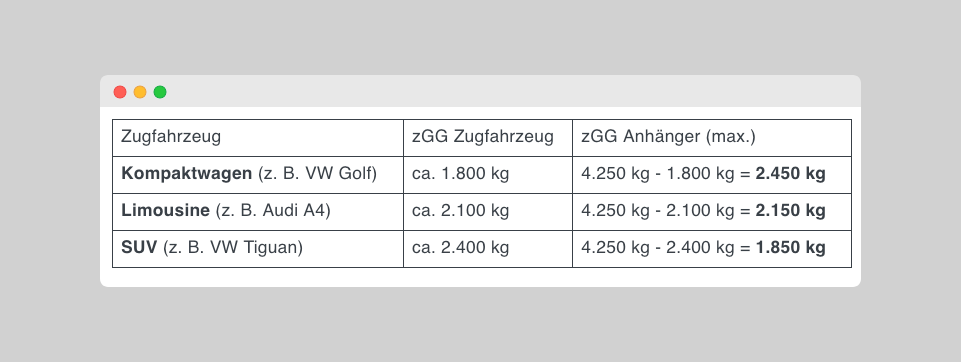 4.250kg−zGG Zugfahrzeug=maximales zGG Anhänger