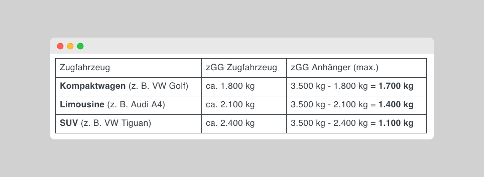 3.500kg−zGG Zugfahrzeug=maximales zGG Anhänger