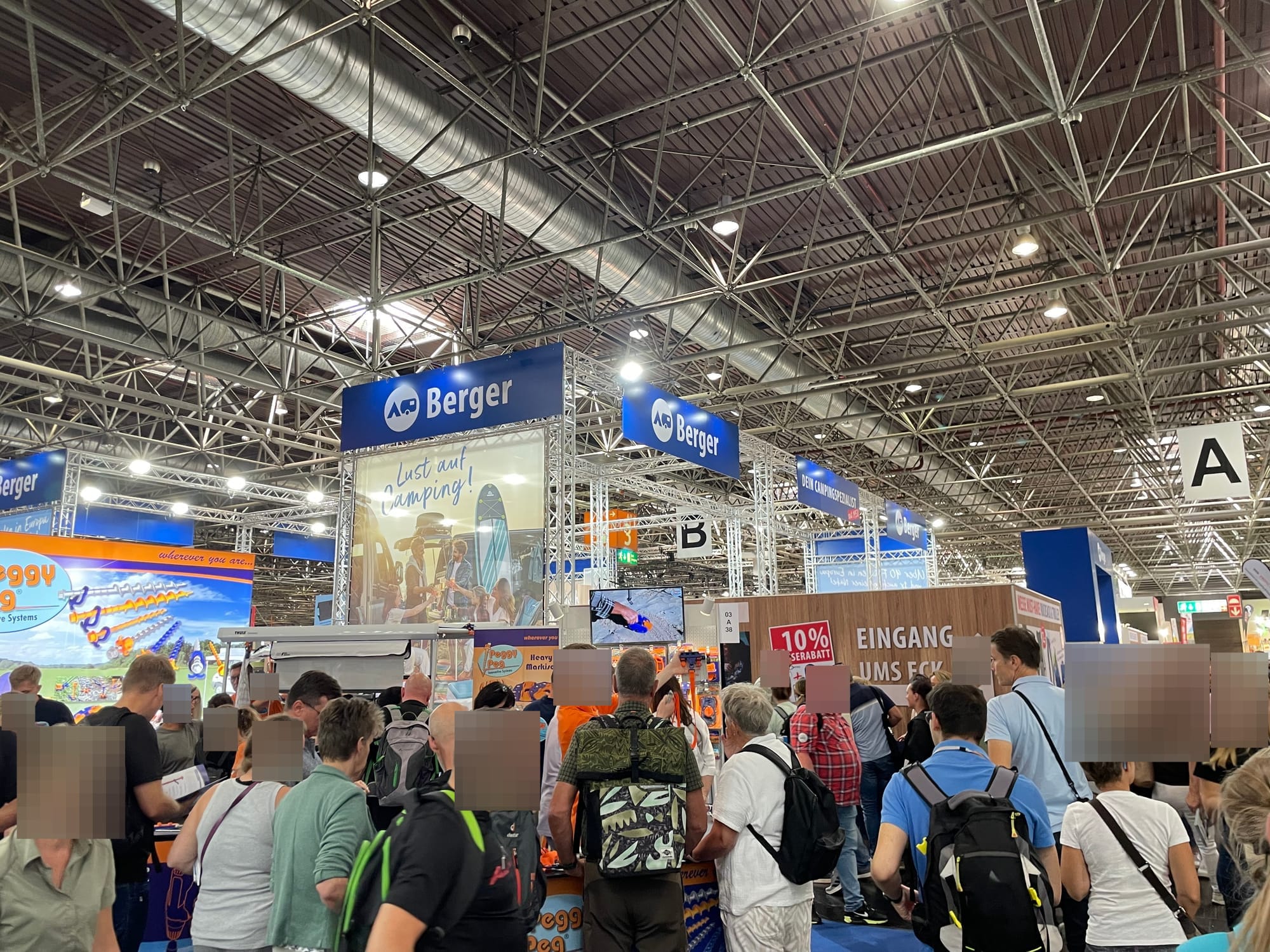 Nicht nur bei den Wohnwagen selbst, auch beim Campingzubehör gibt es auf Messen oft ordentliche Rabatte. Wir haben uns bei Fritz Berger auf dem Messegelände mit Toilettenchemie, Geschirrsets und anderen wichtigen Camping-Utensilien eingedeckt – alles zu deutlich reduzierten Preisen.